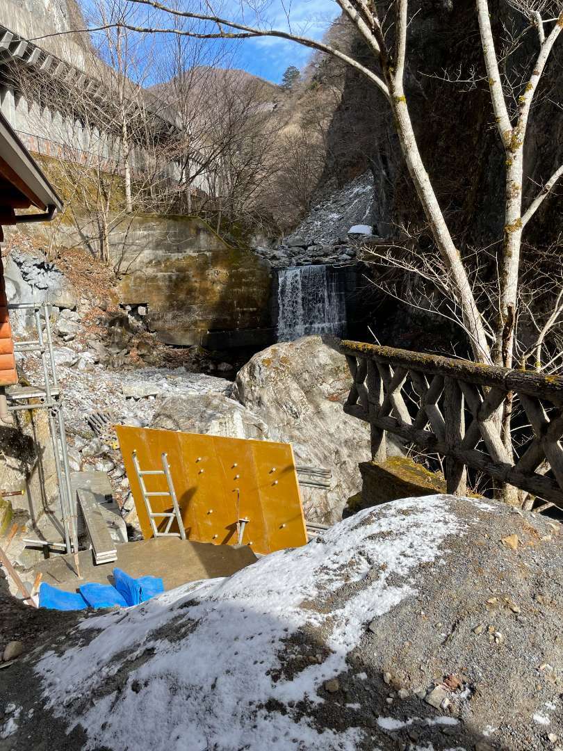 東京都奥多摩町、日原鍾乳洞の河川の擁壁工事