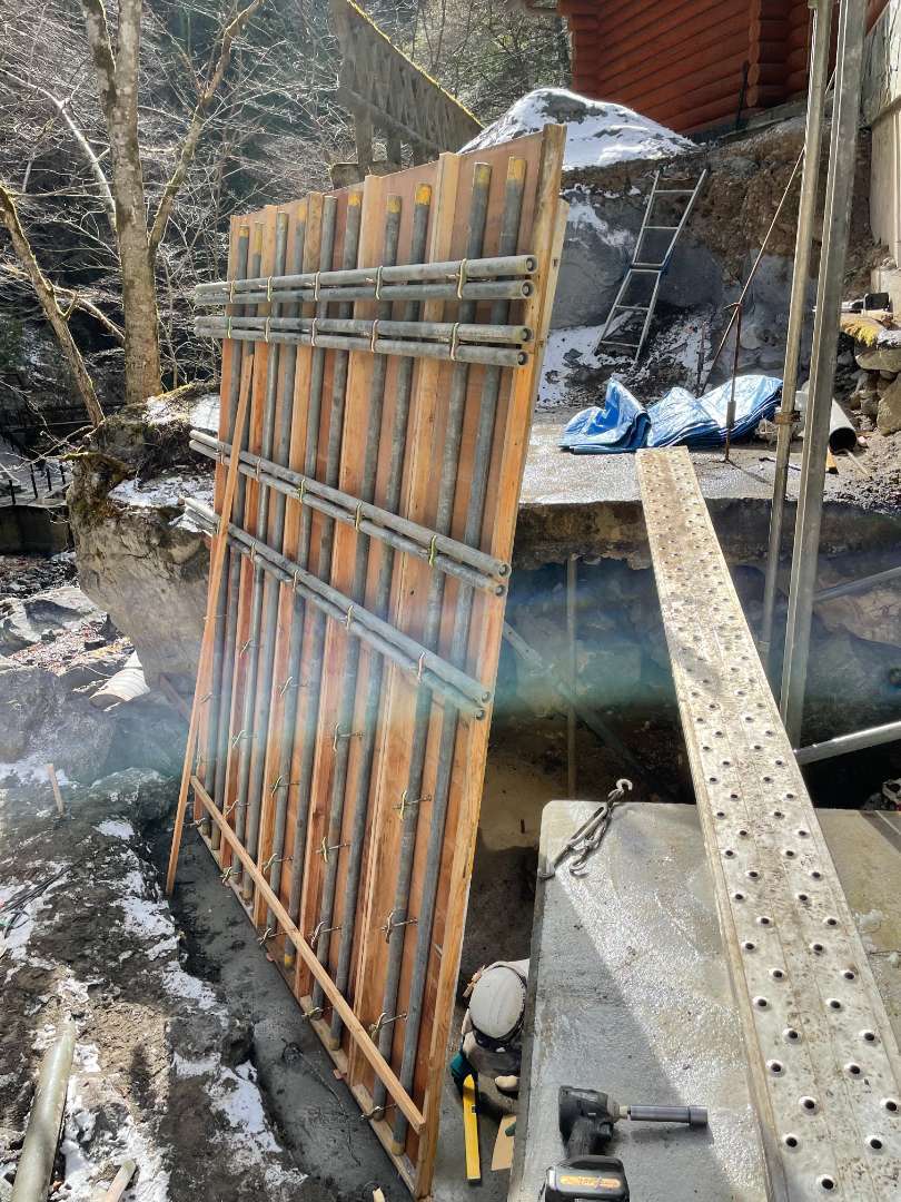 型枠工事/型枠搬入/型枠運搬/型枠建込み/擁壁工事/苦戦